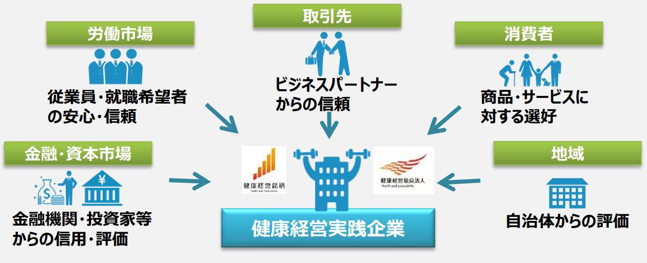 それは、健康経営に係る各種顕彰制度を通じて優良な健康経営に取り組む法人を「見える化」することで、従業員や求職者、関係企業や金融機関などから「従業員の健康管理を経営的な視点で考え、戦略的に取り組んでいる法人」として社会的な評価を受けることができる環境を整備することを目標としているからです。