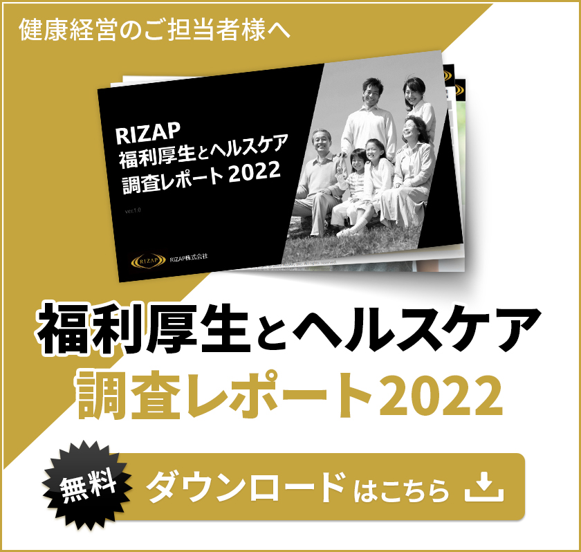 RIZAPでは心身ともに健やかに、高いエンゲージメントで長く働き続けるための福利厚生がどんなものかを2,000名に調査しました。メンタルヘルスケアに繋がる福利厚生のあり方についてご検討の皆様はぜひご覧ください。RIZAP法人向け福利厚生でサービスのご提案しています。