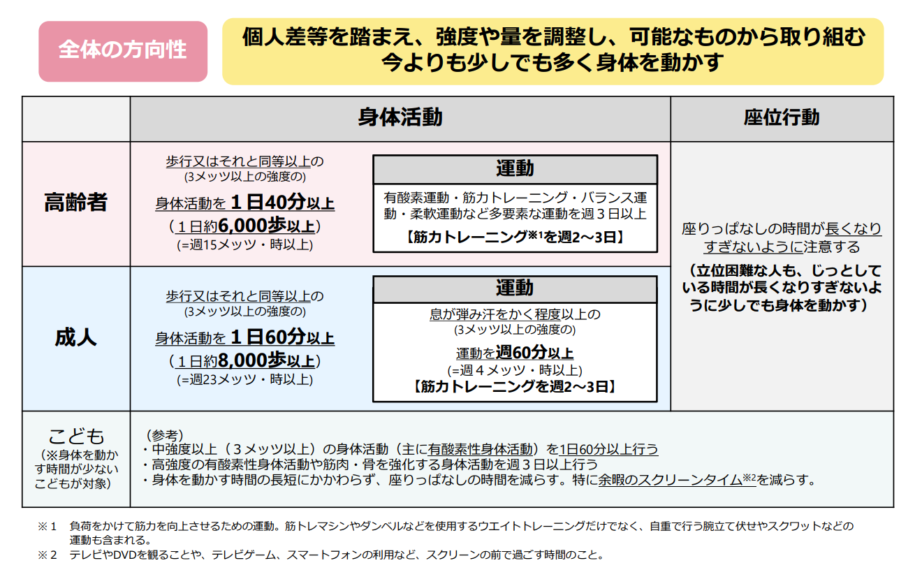 参照元:厚生労働省 健康づくりのための身体活動・運動ガイド 2023(案)