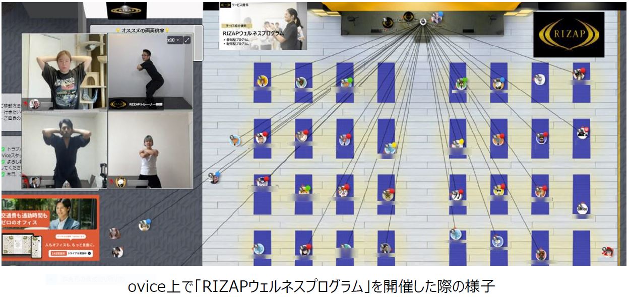 RIZAPとoViceは2022年6月から計5回にわたり、RIZAPが企業の健康増進を支援するために行っている「RIZAPウェルネスプログラム」を「ovice」を活用して開催しました。