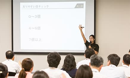RIZAPメソッドを熟知し、セミナー講師として認められたトレーナーだけが、ウェルネスプログラムを担当します。