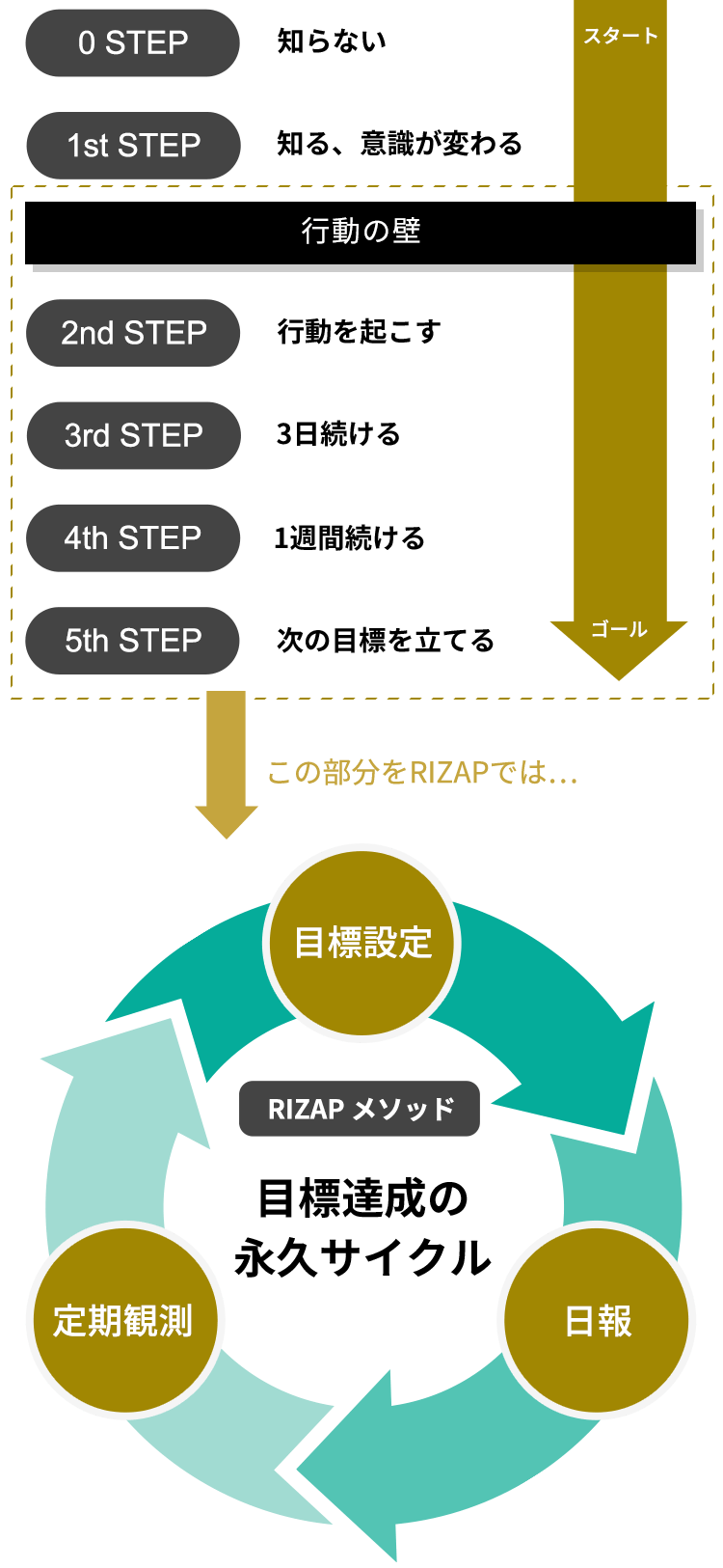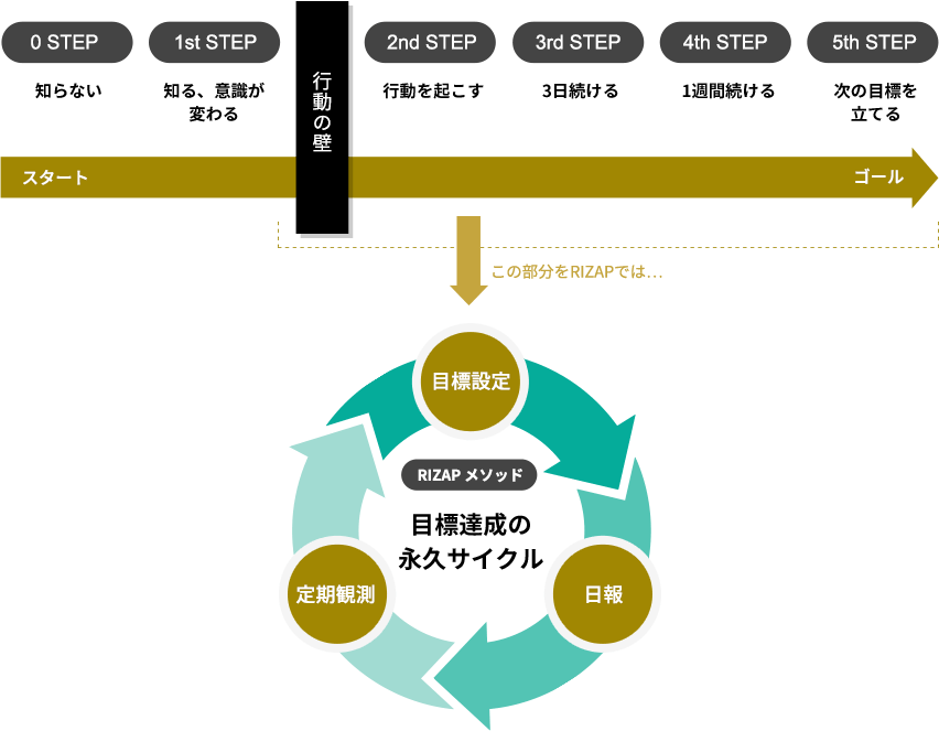 RIZAPメソッドの一つは、わかっていてもできない、やりたいけどできない『行動の壁』を打ち破ることです。